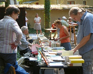 Es gab wieder Kaffee und Kuchen. Außerdem waren diesmal Büchertische aufgebaut. Frau Fink und ihr Partner sind „Reiseantiquare“ aus Friedrichshagen und haben ihre Bücher angeboten. Der Zuspruch war gut.